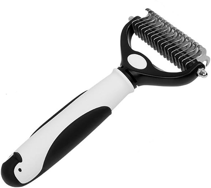 • 🐧Dog Rake Brush For Shedding: Start with 9 teeth side for stubborn mats and tangles and finish with 17 teeth side for thinning and deshedding. Achieve faster and more professional dematting and grooming results.