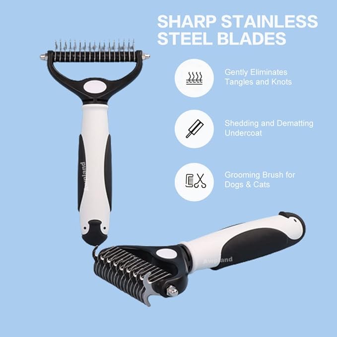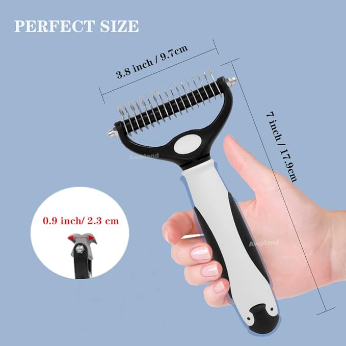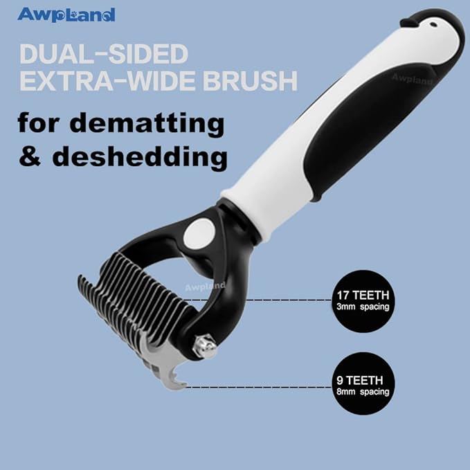 • 🐧One Brush Fit Most Pets: The awpland dog combs for grooming matting supplies can work on large dogs, medium dogs, small dogs & even cats with extra long, super thick hair. Perfect solution for dogs and cats with thick fur or dense double coat care.