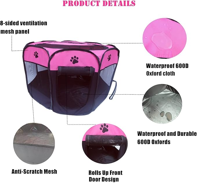 • 3.Premium Construction: Constructed from thick waterproof 600 D polyester oxford fabric,breathable mesh window shades, and reinforced with iron wiring. Spacious 8-panel design with reinforced seams and corners. Zippered door provides easy in/out access for your pet. Keep your pet safely inside everywhere.