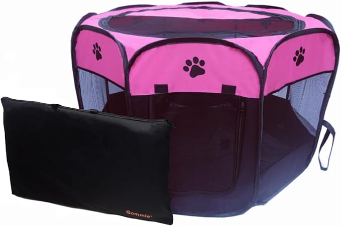 Portable Pet Playpen for Small Cat Dog Puppy Rabbit,Cat Kitten Playpen Indoor Outdoor with Carrying Case,Waterproof Bottom and Removable Zipper Top (S(28.7" x 28.7" x 16"), Rose)