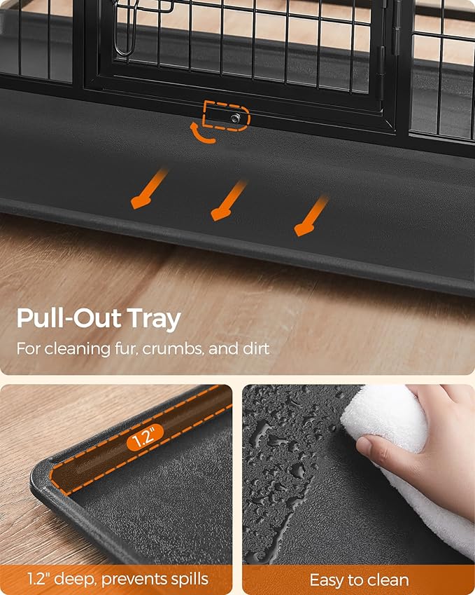 • [Easy to Clean] This dog cage comes with a pull-out tray so you can take it out for cleaning—easily keeping your fur friend’s place clean (it’ll thank you for that!)