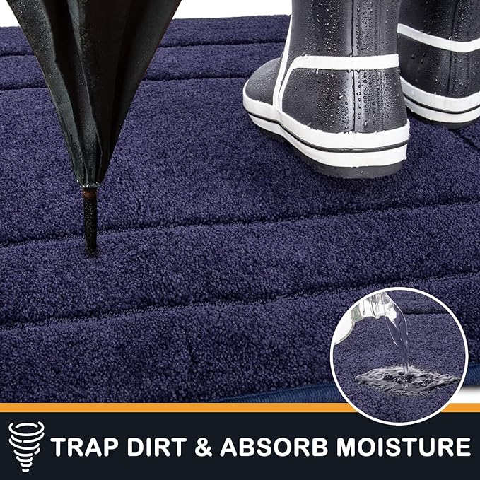 PURRUGS Dirt Trapper Door Mat 24" x 59.5", Non-Slip/Skid Machine Washable Entryway Rug, Dog Door Mat, Super Absorbent Welcome Mat for Muddy Wet Shoes and Paws, Navy Blue