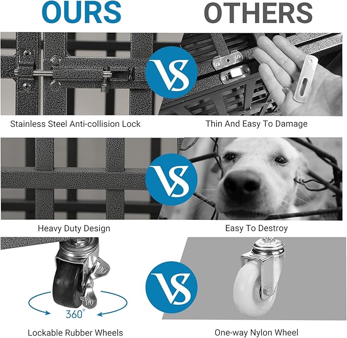 • 【Safe & reliable】 The xxl dog crate features a multi-layer hammered protective coating that resists rust and corrosion, making it perfect for indoor or outdoor use. In addition, the coating is non-toxic, so even if the dog bites or licks the frame, it is safe for the dog.