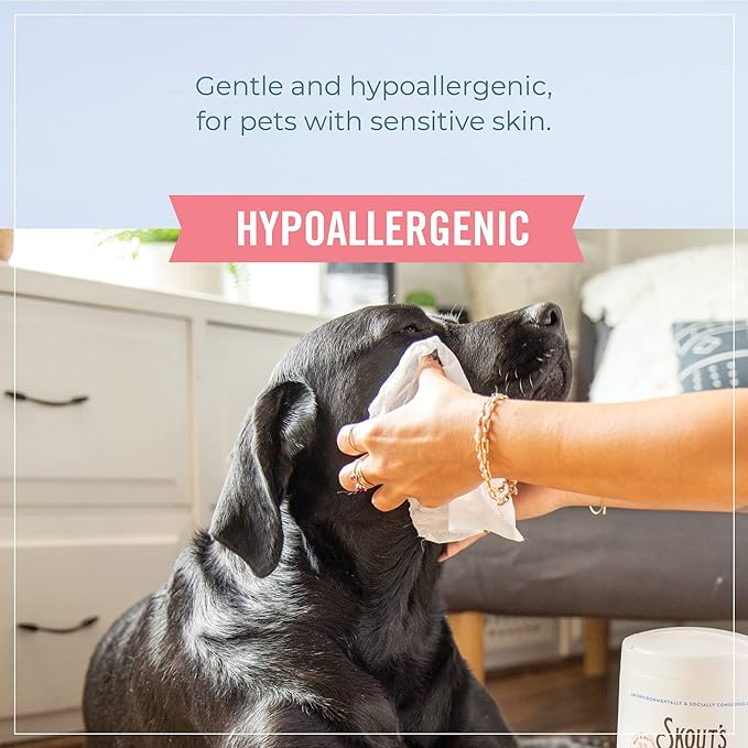 SKOUT'S HONOR Pet Grooming Wipes for Dogs and Cats - Deodorizing, Plant-Based, Biodegradable, Fragrance-Free - for Paws, Faces, Skin Folds & Bums, 80 Count