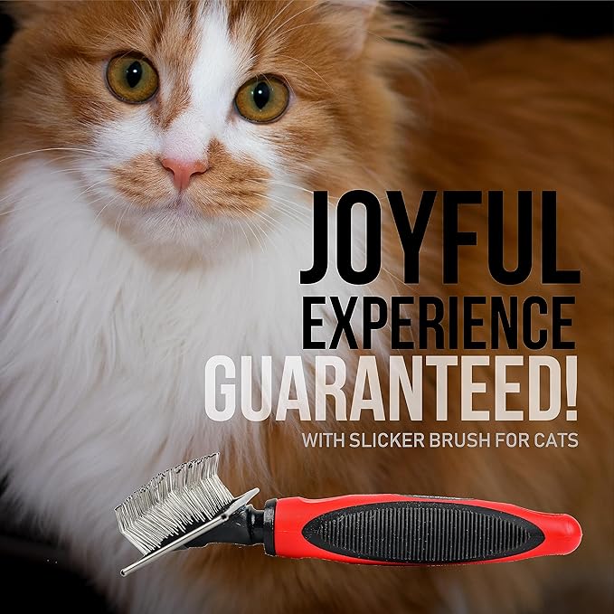 • ๐Ÿ’š UPGRADED HANDLE DESIGN - Our miracle slicker brush for cats and dogs also pays attention to the handle's design. Pro handle with red and black soft rubber material ensures a comfortable grip and long-lasting use, while gentle and curved large bristles cater to the pet's comfort.