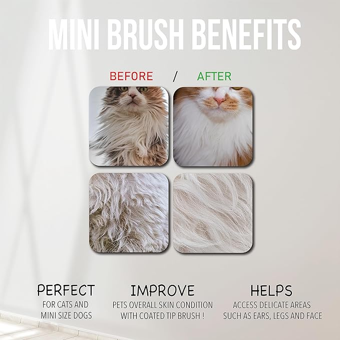 • ๐Ÿ’š MINI BRUSH - FOR SMALLEST SIZE PETS. Specially exhibited pin brush for small dogs, cats or rabbits. It also works great for large size animals to reach delicate parts like the face, ears, and paws. It is a great pet brush for dogs with sensitive skin and used for Poodles, Goldendoodle, Labradoodle, Cockapoo, Doodles, Chows, Bernedoodle, Bichon, Pomeranian, Toy Poodles, Poodle Mix, Maltese, Maltipoo, Poodoodle, Spaniel, Shih tzu brush, yorkshire terrier brush and many other small breeds. Also