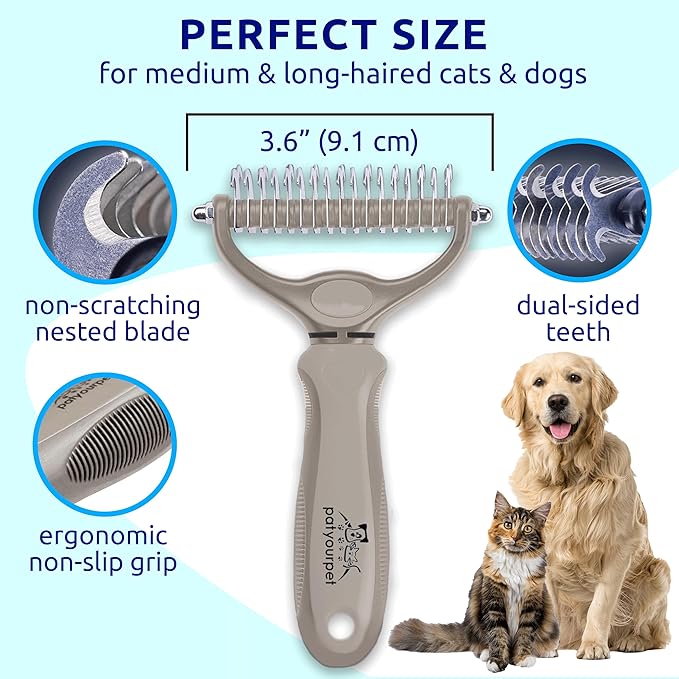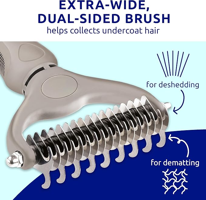 Pat Your Pet Deshedding Brush - Double-Sided Undercoat Rake for Dogs & Cats - Shedding Comb and Dematting Tool for Grooming, Extra Wide (Grey)
