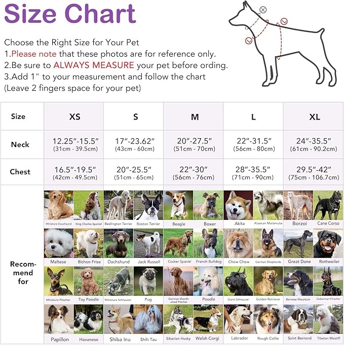 • 【Fully Adjustable】 This adjustable harness has 4 easy adjusting straps that you can use them to create a perfect fit for your dog. Don't forget to leave space about two fingers for your dog