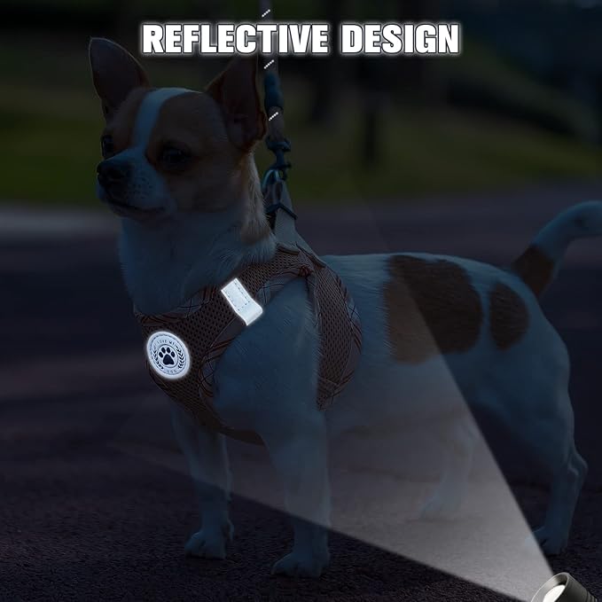 • Professional design: No pull and no choke.The puppy dog harness has a raised design at the front of the chest and is recessed at the bottom edge for a more comfortable fit. With reflective strips on the pet harness and leash, you can take your puppies out at night without worrying about not being able to find them, making them safer in the dark.