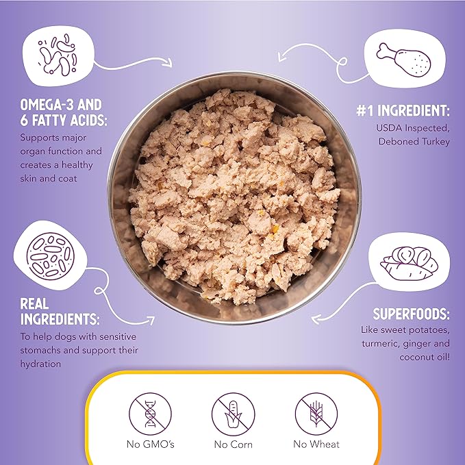 • Immune-Boosting Superfoods: Infused with turmeric & ginger, this wet dog food naturally supports immune health, keeping your dog strong and resilient.