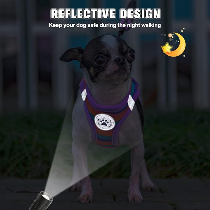 BEAUTYZOO Dog Harness and Leash Set for Small Dogs,No Pull Step-in Harness for Puppy XS S Sized Dogs and Cats,Air Mesh Adjustable Breathable Soft No Chock Escape Proof Vest Harness,Striped Purple XXS