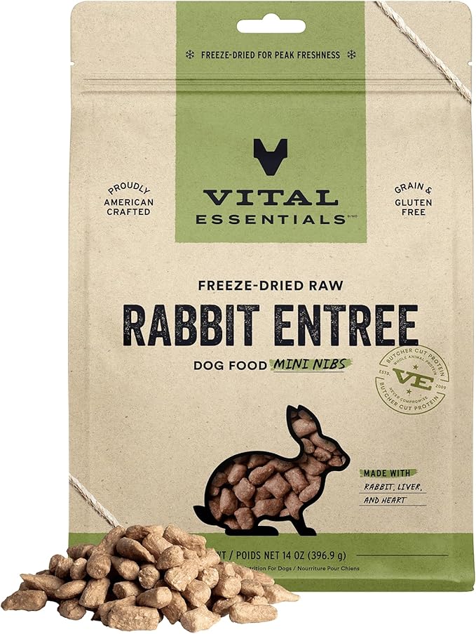 Vital Essentials Freeze Dried Raw Dog Food, Rabbit Mini Nibs Entree, 14 oz