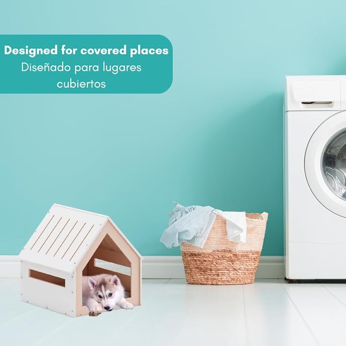 • VENTILATION INCLUDED: gabled roof with holes for ventilation and lighting. The house features slits on two sides that serve as ventilation holes, as well as light windows, making the interior space well-ventilated and illuminated. In addition, the slots allow the pet to observe what is happening around him from his hiding place.