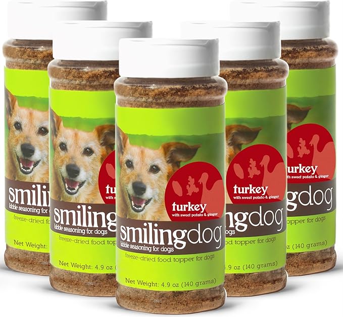 Herbsmith Kibble Seasoning – Freeze Dried Turkey – DIY Raw Coated Kibble Mixer - Dog Food Topper for Picky Eaters, 4.9 oz [Bundle x5]