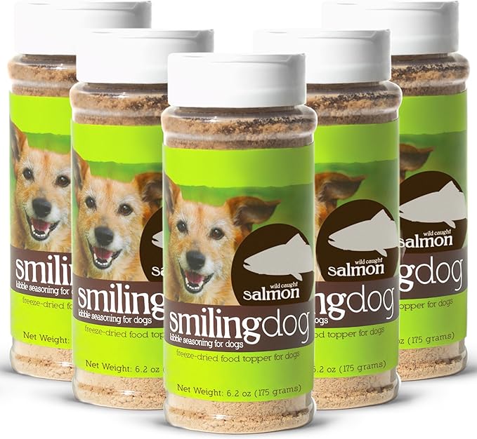 Herbsmith Kibble Seasoning – Freeze Dried Raw Salmon – DIY Raw Coated Kibble Mixer - Dog Food Topper for Picky Eaters, 6.2 oz [Bundle x5]