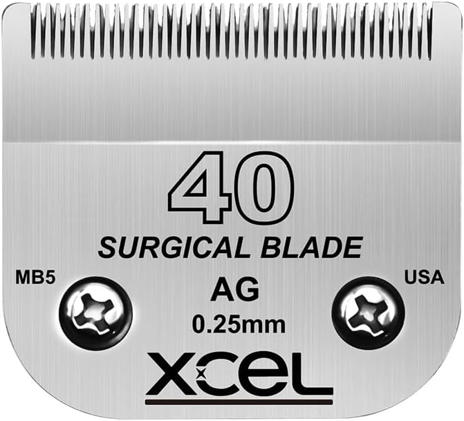 XCEL Surgical Pet Clipper Blades, Compatible with Most Andis, Oster, Wahl A5 Clippers, (#40-0.6mm (3/128-inch) Cut Length