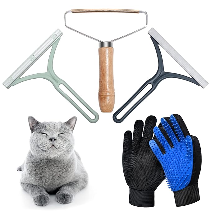 • Upgraded Combination and Widely Use:Copper pet hair remover be used for thick piled item and sheavy duty, such as winter coats,carpet,furniture, ar car interiors, and etc;Plastic fabric shaver can be used for soft and thin fabrics, such as pet,bed sheet,sweatshirt,velvet,and etc;Gloves can provide a soft and relaxing massage