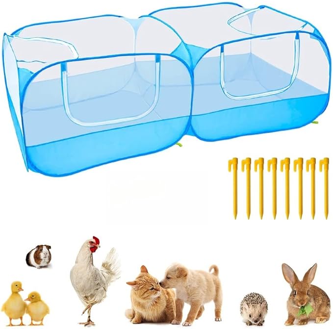 Portable Chicken Coop Chicken Run with Removable Bottom,Large Foldable Pet Enclosure for Puppy Duck Kitten Rabbits Indoor Outdoor Yard(Blue)