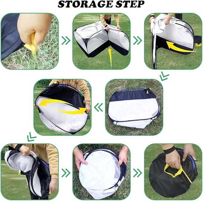 • 【Automatic Opening】No need for complex splicing, built in frame, opened in seconds. Folds back flat when not in use for easy storing. When it is opened under spring pressure, it should be away from children and face.