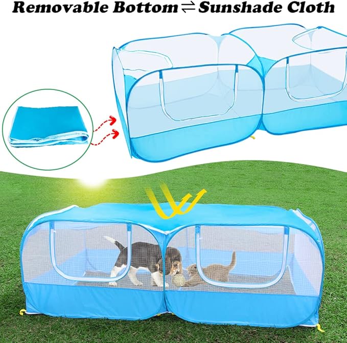 • 【Upgraded Pet Playpen】Removable design at the bottom,suitable for indoor and outdoor use.Removable Bottom put on top of the tent also be used to shade the sun to prevent heat stroke in pets.It is ideal for dogs, cats, isolating an injured pet, or introducing a new pet.