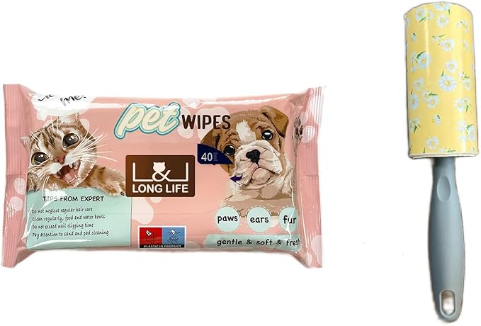 L&L LONG LIFE Dog Wipes XXL Size 8x12 inch Cat Cleaning Wipes, Extra Sticky Dog and Cat Lint Remover for Pet Hair Removal