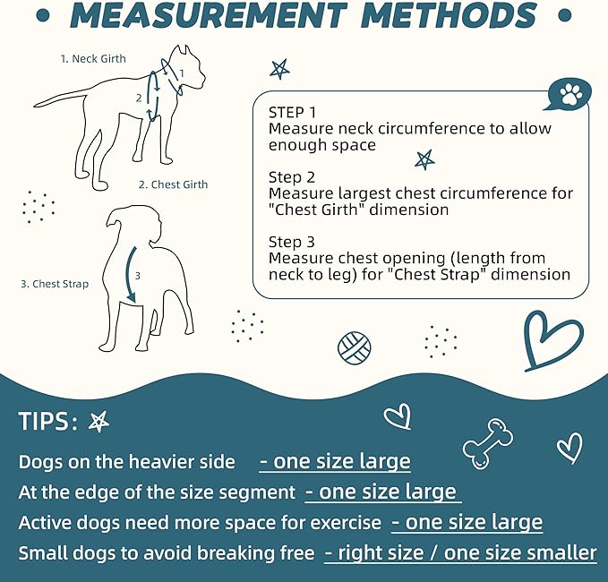 • [3 Sizes Option] - No Pull dog harnesses are available in 3 sizes. Please measure your dog carefully according to the size chart before placing an order to ensure the collar fits your dog. Please leave room for your dog to rest, eat and chew