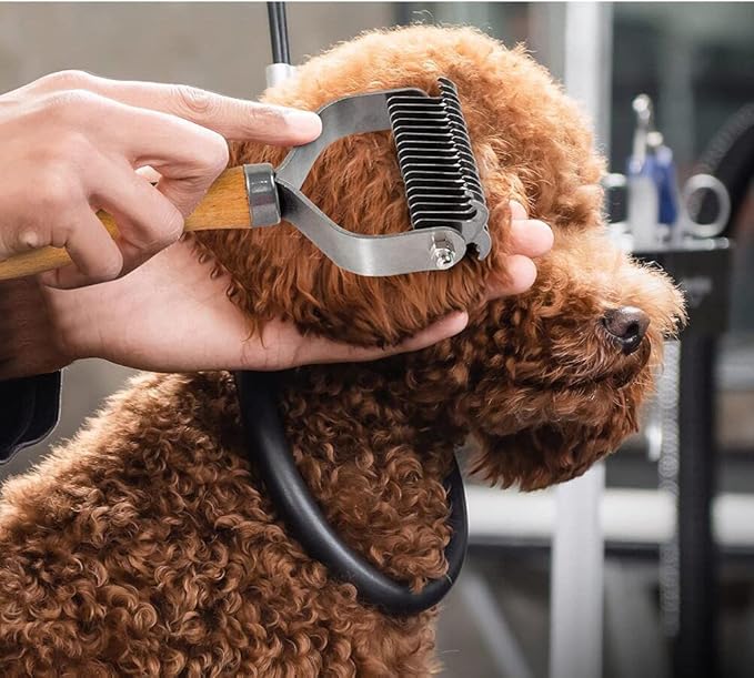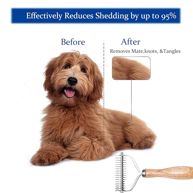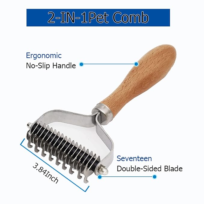 • ✅【Sharpe Blade】A 2-sided sharp stainless steel blade can cut mats and tangles effectively, avoiding pulling or hurting your pet when detangling and deshedding.