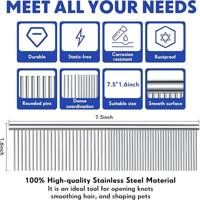• Solid and Reliable: made of quality stainless steel, our dog grooming combs metal are sturdy and solid, safe and friendly, with a smooth surface, not easy to fade, rust, break or corrode, dependable to serve your pet for a long time