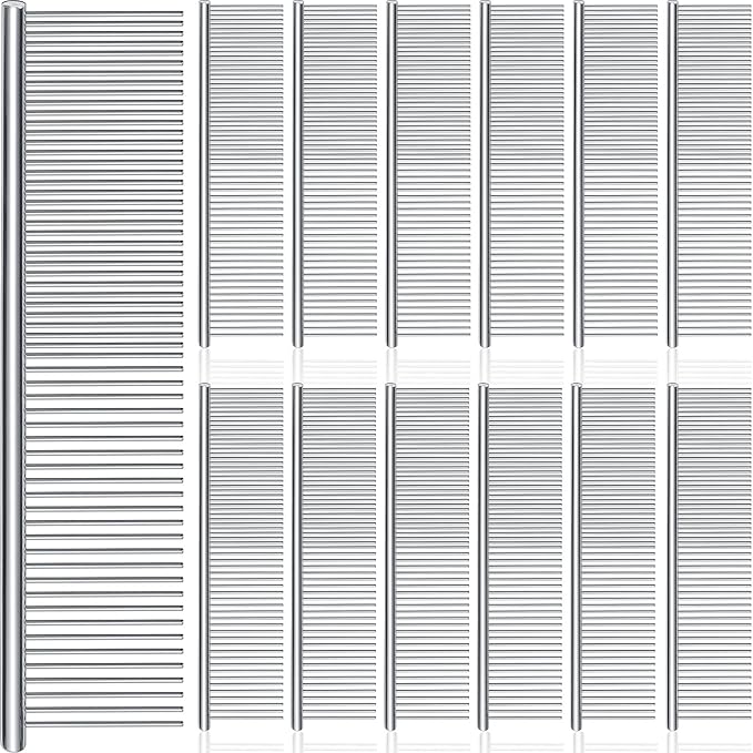 Lallisa 12 Pcs Stainless Steel Dog & Cat Comb, Metal Grooming Tool for Removing Knots, Long and Short Haired Pets Including Dogs, Cats & Others, 7.48 Inch