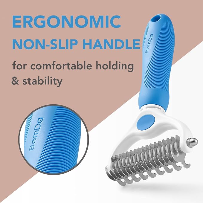 • ERGONOMIC NON-SLIP RUBBER HANDLE: Non-slip handle is ergonomically designed for a comfortable grip and ensuring a safe deshedding experience for you and your pet.