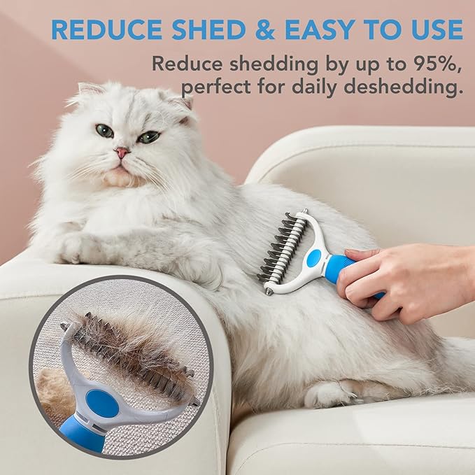 Pet Grooming Brush- Double Sided Dematting and Deshedding Undercoat Rake for Dogs and Cats- Safe Dog Shedding Brush, Blue1