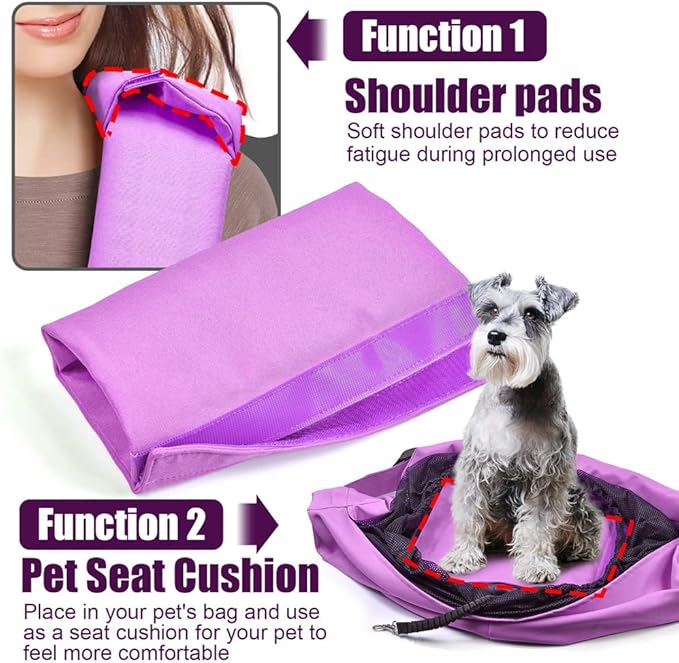 • PAD: It could be a shoulder pad or a cushion for pets; The strap is soft and wide, which can evenly distribute the weight to your whole body; The pad also provides extra structural support for the four-leg kid if you put it at the bottom of the bag, they feel much better when sit or stand on this flat and soft cushion