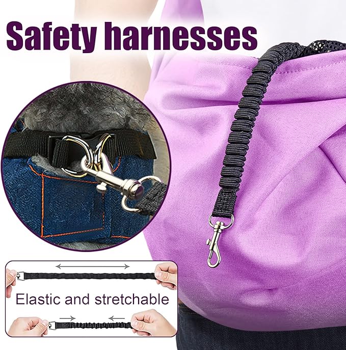 • SAFE: If your pet gets bored and decides to jump out of it, the collar clip and air mesh could prevent the pet from falling; The metal clip is attached to a sturdy and elastic string, make sure clip it to the collar or harness before moving; Black air mesh is breathable and soft, your pets would not hate it