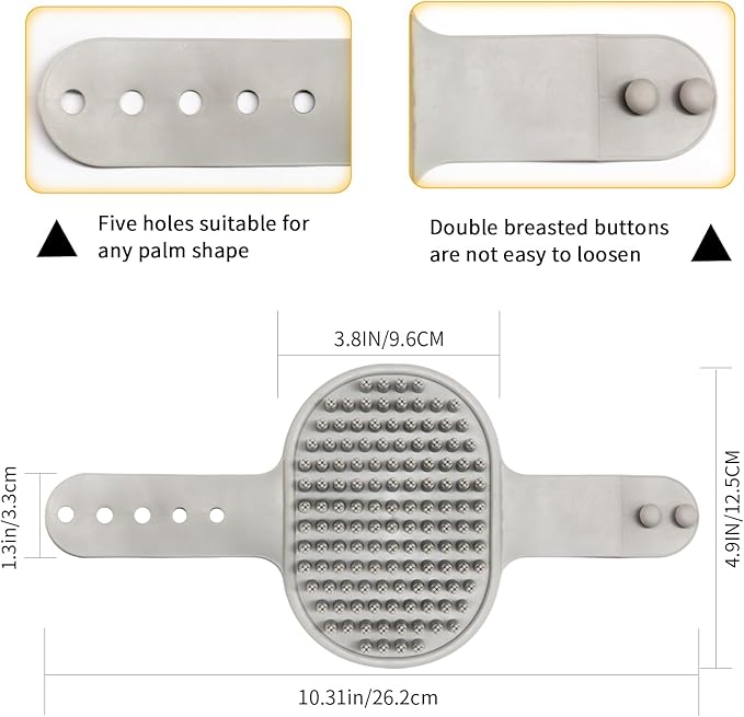 • 【EXCELLENT DESIGN】: The dog bathing brush has an adjustable loop handle for a comfortable grip that fits perfectly in the palm of your hand. With a product size of 9.8*4.8*0.7 and a weight of 85 g, it is perfect for controlling during a long pet grooming session. This makes it a favorite among dog shampoo brushes