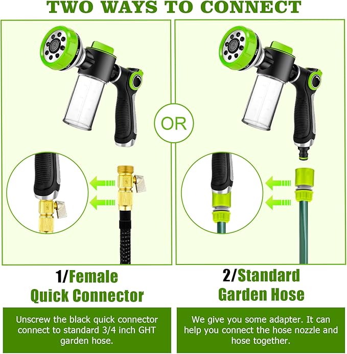 - Ergonomic Design: Easily thumbwheel switch, it only needs a slight push by the thumb to start work and adjust the water output. The soap on/off would help you to switch the soap mode and water mode, and control the dilution of foam; Rotate the head of hose sprinkle, and switch the water spray mode.