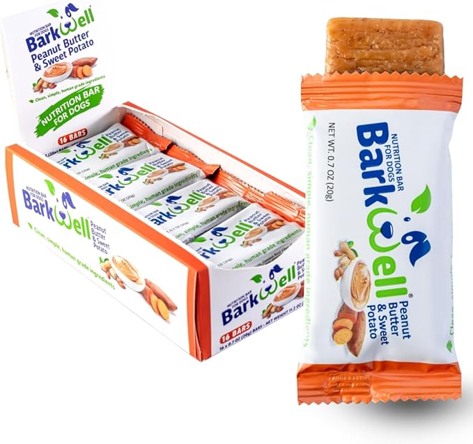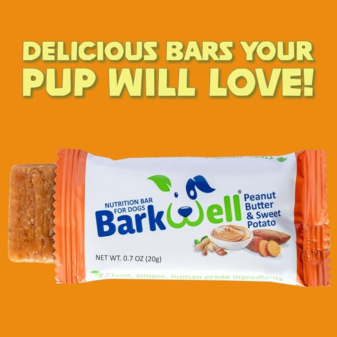 • HEALTHY DOG TREATS FOR ALL AGES - BarkWell Protein Bars are healthy dog treats perfect for dogs and puppies of all ages. Each 0.7-ounce bar is packed with essential nutrients and protein, making them ideal doggie treats for your furry friend. Our natural dog treats are free from harmful additives, ensuring your pet gets only the best from their treats