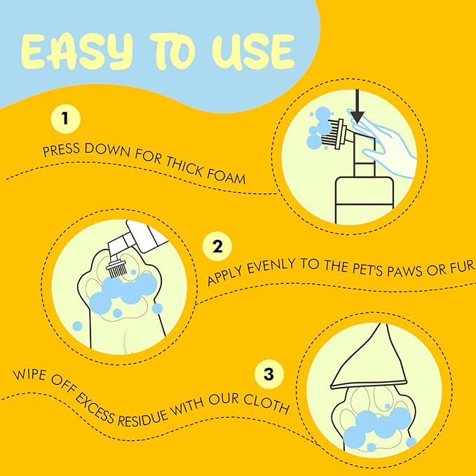 • CLEAN EFFICIENTLY: Our No-Rinse Foaming Paw Cleaner can clean pet's feet easily, without using water or wipes. Effectively clean surface dirt and debris. Comes with an absorbent towel that dries immediately after use without taking time to let it air dry