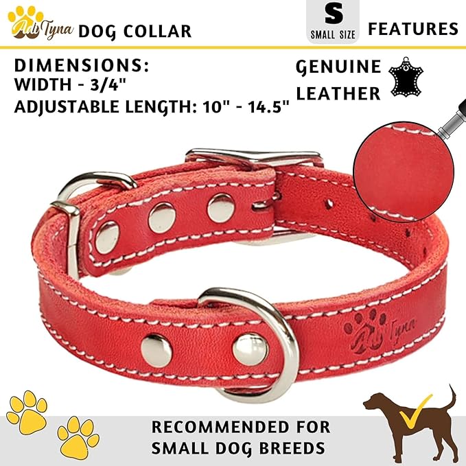 Heavy Duty Red Leather Dog Collar for Small Dogs- Soft and Strong Dog Collar for Puppy or Small Dogs (Small: Fit 10" - 14.5" Neck, Red)