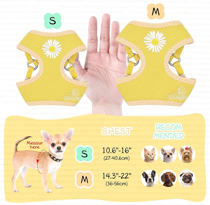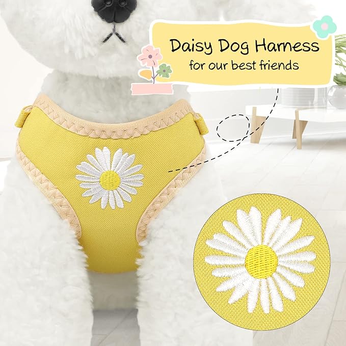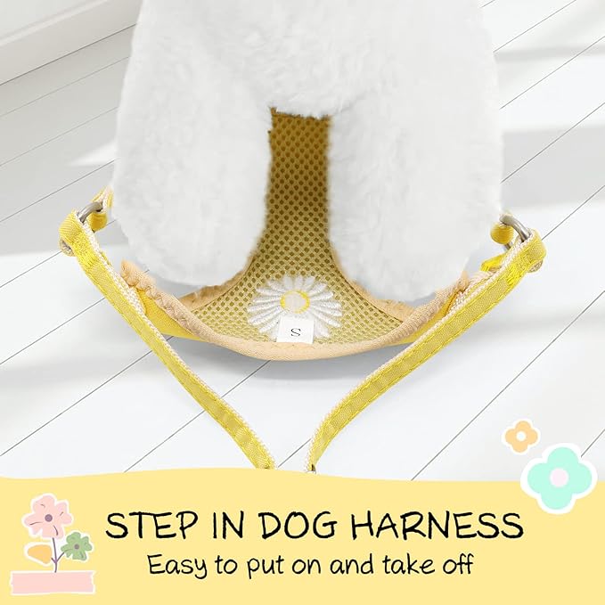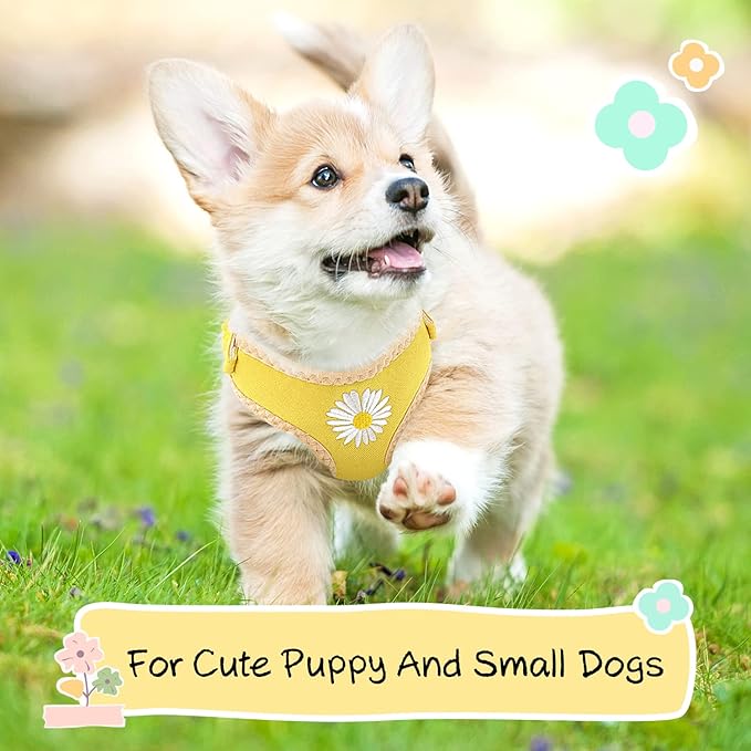 Puppy,XS/XXS Dog Harness Yellow Daisy Dog Harness for Extra Small Dogs Step in Dog Lessh and Harness Set Soft Padded Vest Harness Recommend for Chihuahua,Yorkie,Shih Tzu,Toy Poodle...