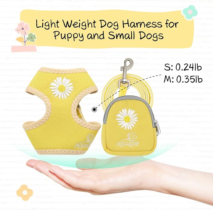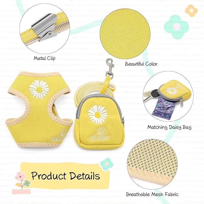 • 【 Dog Harness And Leash And Bag Set 】Package includes - 1 adjustable-size Daisy Dog Harness + 1 4-foot leash + 1 removable Daisy Bag.