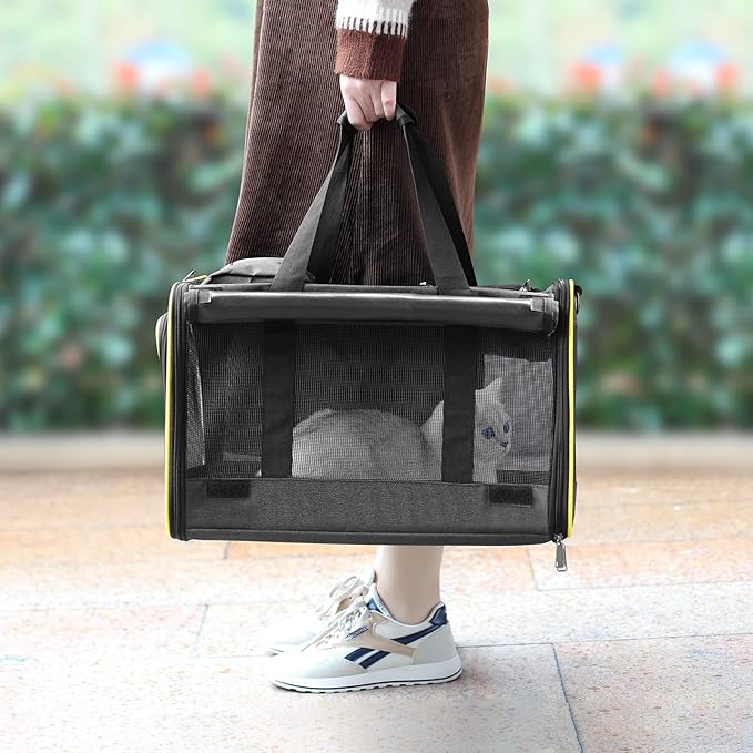 • 【Breathable and Private】GAPZER large cat carrier designed mesh all around to ensure normal circulation of air inside the box and easy for you to check on your pet. These roller blinds can be put down if your pet feels nervous.