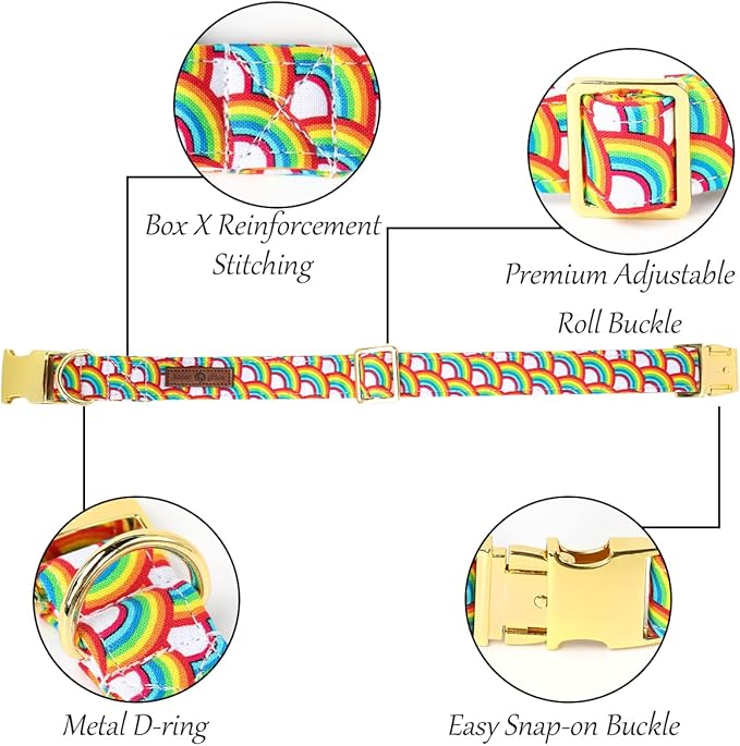 Lionet Paws Rainbow Dog Collar with Sailor Bow, Soft and Comfortable Adjustable LGBT Pride Collar for Dogs, Medium, Neck 13.5-22 inches