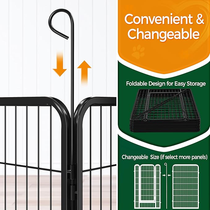• Larger Playpen Available: Each panel measures 28″ W × 47.5″ H. Eight pet playpens can be connected to a larger enclosure space that allows your pets to rest and play without worrying about them running off. You can buy more sets to increase the size of the playpen