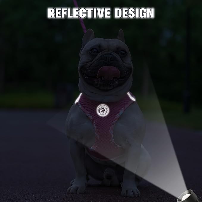 • Professional design: No pull and no choke.The puppy dog harness has a raised design at the front of the chest and is recessed at the bottom edge for a more comfortable fit. With reflective strips on the pet harness and leash, you can take your puppies out at night without worrying about not being able to find them, making them safer in the dark.