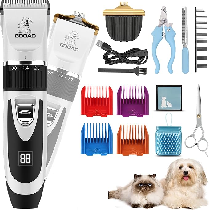 Dog Clippers Grooming Kit and Paw Trimmer,Cordless,Low Noise, Electric Quiet,Rechargeable, Pet Hair Clippers for Thick Coats, Dog Trimmer Grooming, Shaver for Small and Large Dogs Cats