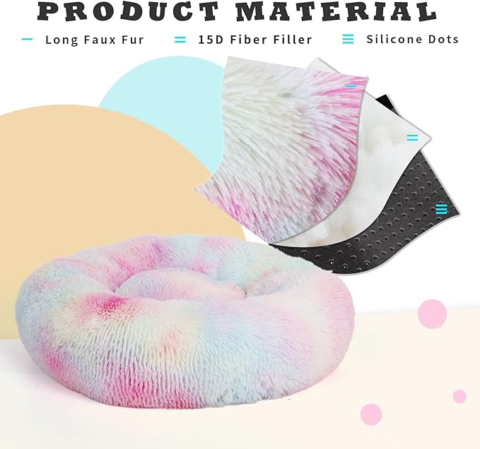 • Notice: This round dog bed is best gift for dogs/cats who love to curl up. dog bed is stored and shipped compressed, rolled and vacuum sealed in a vacuum bag. Please pat to make the dog bed completely fluffy before use. wait for 48 hours patiently and manually adjust the dog bed to the desired shape. We are always committed to do more professional dog bed to provide you the most satisfactory shopping experience. Please contact us if you have any problem.