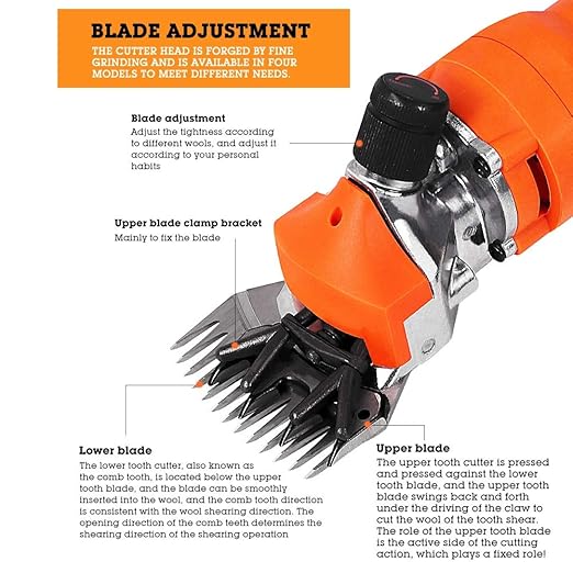 • 【CAUTIONS】When using electric sheep shears, remember to lubricate the blades. Remember that the machine cannot run at idle. It is easy to get hot when two blades rub together. Please use the cooling spray every few minutes, take short breaks during shearing, clean the blade in time and don't run idle to prevent the blade from overheating