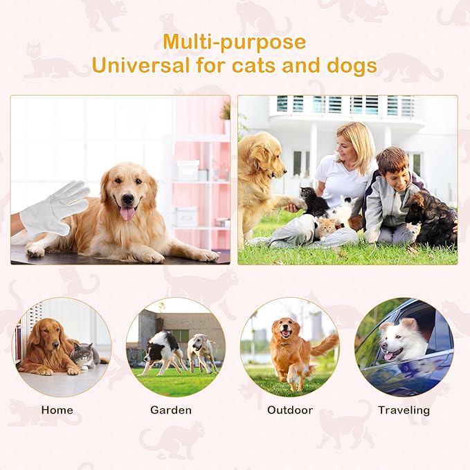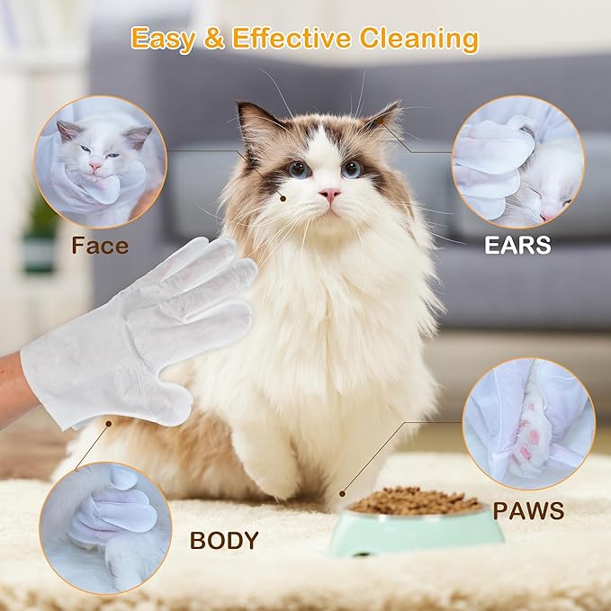 • CLEAN WITH CONFIDENCE - Dog cleaning glove wipes effectively simplify the cleaning steps and are perfect for use at home, on the go or after pet's playtime. It can be used to clean the corners of the eyes, ear, chin, meat pad, ass, and hair. The portable package is easy to carry and can keep the wipes, particularly wet, even after opening for a long time. Suitable for all pets: cats, dogs, puppies, and kittens.