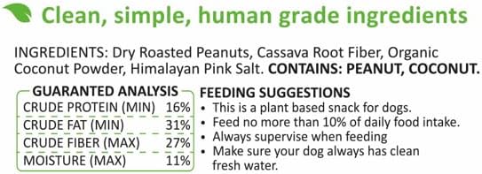 • SIMPLE, WHOLESOME INGREDIENTS - our protein bars for dogs are made with easy-to-pronounce ingredients such as Dry Roasted Peanuts, Cassava Root Fiber, Organic Coconut Powder, and Organic Sweet Potato Powder. We prioritize minimally processed, sustainably sourced ingredients to create healthy and tasty dog treats