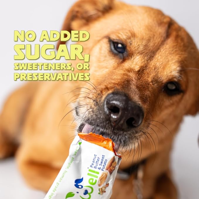 • CONVENIENT AND VERSATILE - each bar is individually wrapped, making them perfect for on-the-go activities like hiking, long walks, and camping. They also double as excellent dog training rewards, pill pockets, stocking stuffers, and advent calendar treats. Keep a peanut butter and sweet potato dog treat in your pocket for a quick and nutritious on the go snack